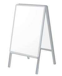 - Штендеры. Изделия раскладываются в виде буквы «А». С каждой стороны расположены кармашки, что позволяет разместить еще больше печатной продукции.